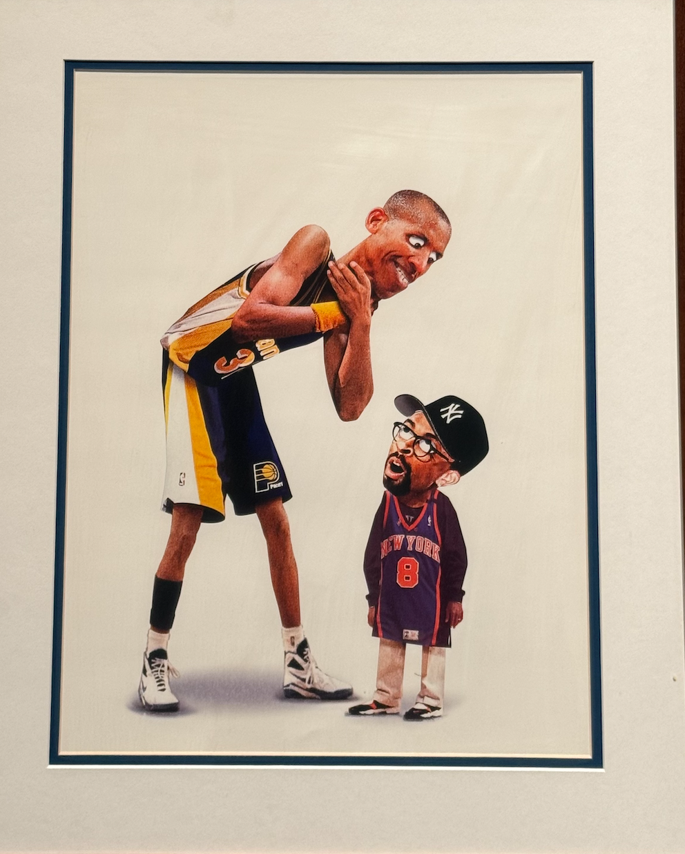 You’ll see scores of photographs and athlete jerseys from one of Lee’s favorite teams, The New York Knicks, where Spike Lee has been a fan since practically the womb. And as an avid sports memorabilia collector and once aspiring baseball player, there’s an array of news clippings of images showcasing his controversial court-side antics, signed autographs from the likes of Michael Jordan, young and old, to illustrations of Knick nemesis Reggie Miller (Indiana Pacers) infamous choking gesture, a nod to the Knicks/Pacers rivalry. Lee’s fusion of sports narratives into his films while celebrating the Black sports figures breaking records and acquiring the highest accolades in their respective fields is a testament to Lee’s unwavering commitment to amplifying excellence in Black culture.