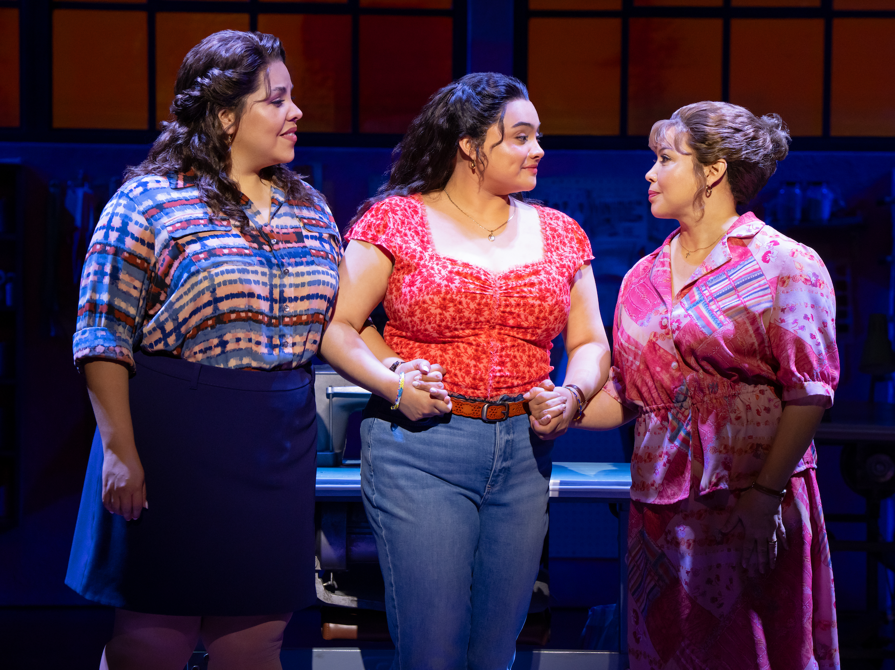 Even though the musical touches on universal complex topics of family obligations, guilt, and pursuing dreams, at the core is the love these women have for each other. A true sisterhood. Communicating their joy, frustration, and camaraderie through feet-stomping, electrifying songs like “Make it Work” and “Oye Muchacha,” and the poignant “If I Were a Bird,” sung by Ana and Itzel (Aline Mayagoitia, Broadway debut).