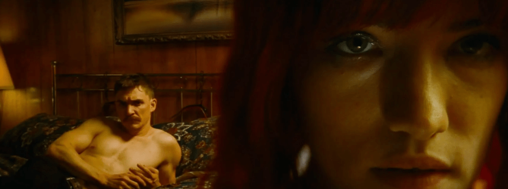 Kyle Gallner as the Demon and Willa Fitzgerald as the Lady in ‘Strange Darling’; Photo: Magenta Light Studios.